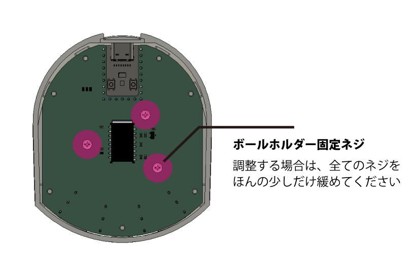 その場合は、裏蓋のネジを3つ外してボールホルダーの固定ネジを3つ緩めて調整できます。